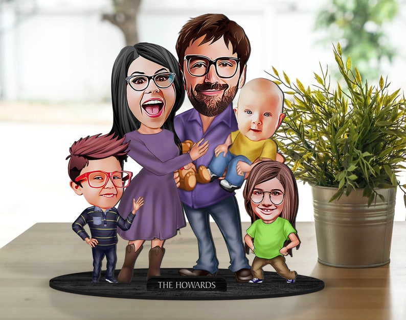 Family with kids Caricature Sculpture