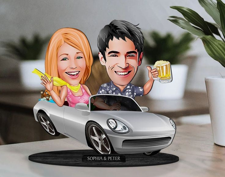 New Car Couple Caricature Sculpture